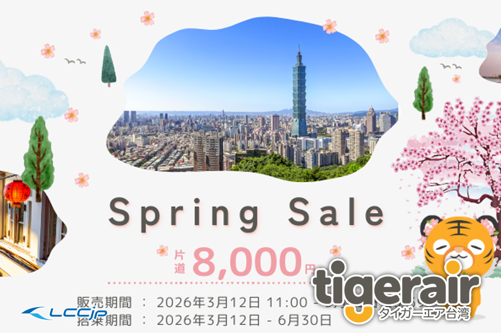 タイガーエア台湾、「スプリングセール」3月12日11時から開催!台湾国際線 片道8,000円から
